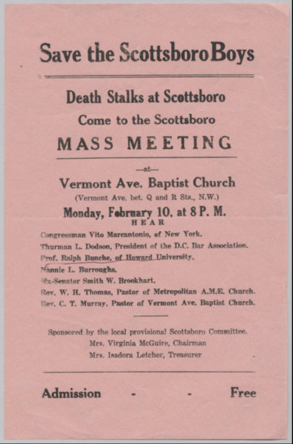 UploadedFlyer for a Mass Meeting To “Save the Scottsboro boys”, 1936.