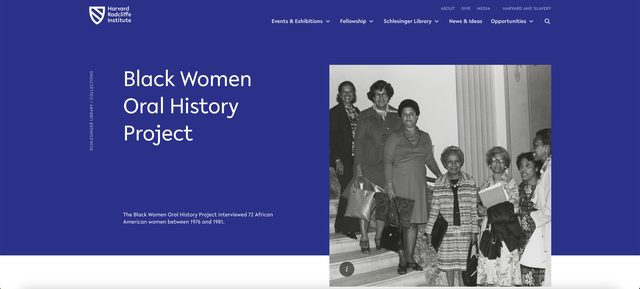 Screenshot of Black Women Oral History Project homepage