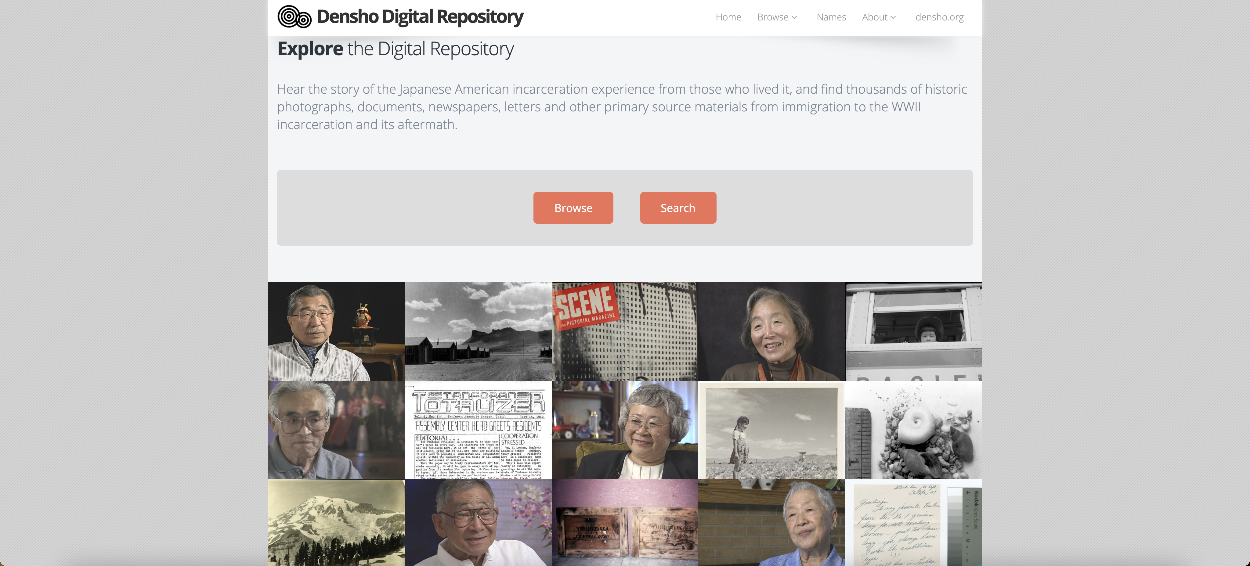 Screenshot of Densho Digital Repository homepage