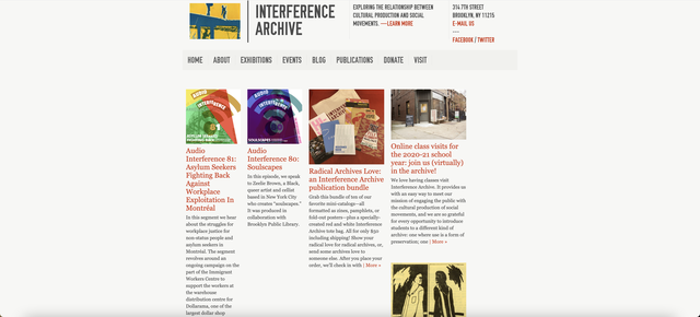 Screenshot of the Interference Archive homepage