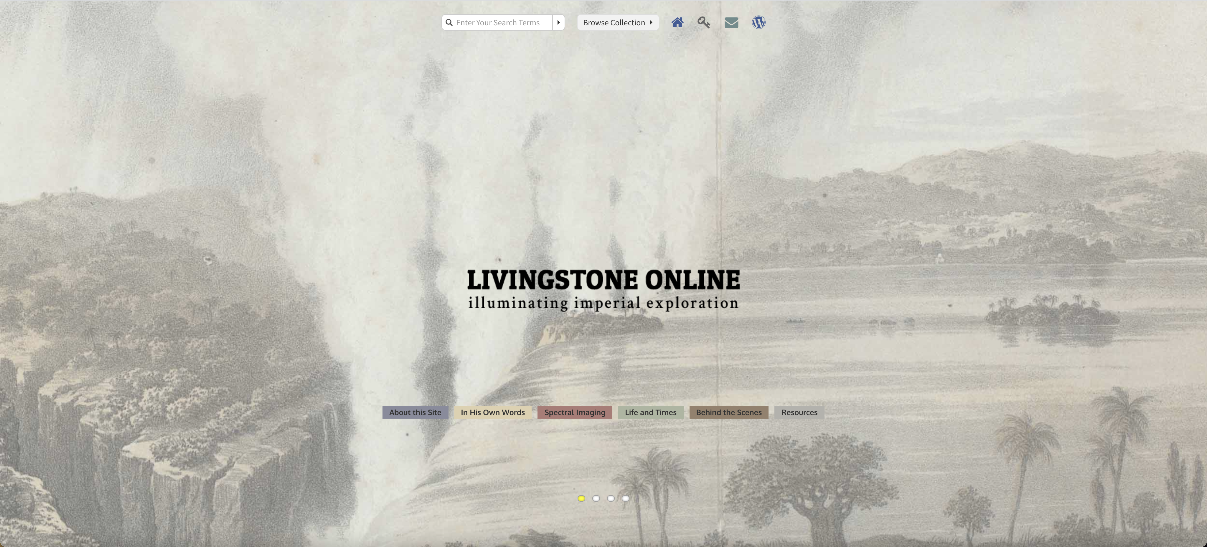 Screenshot of Livingstone Online homepage