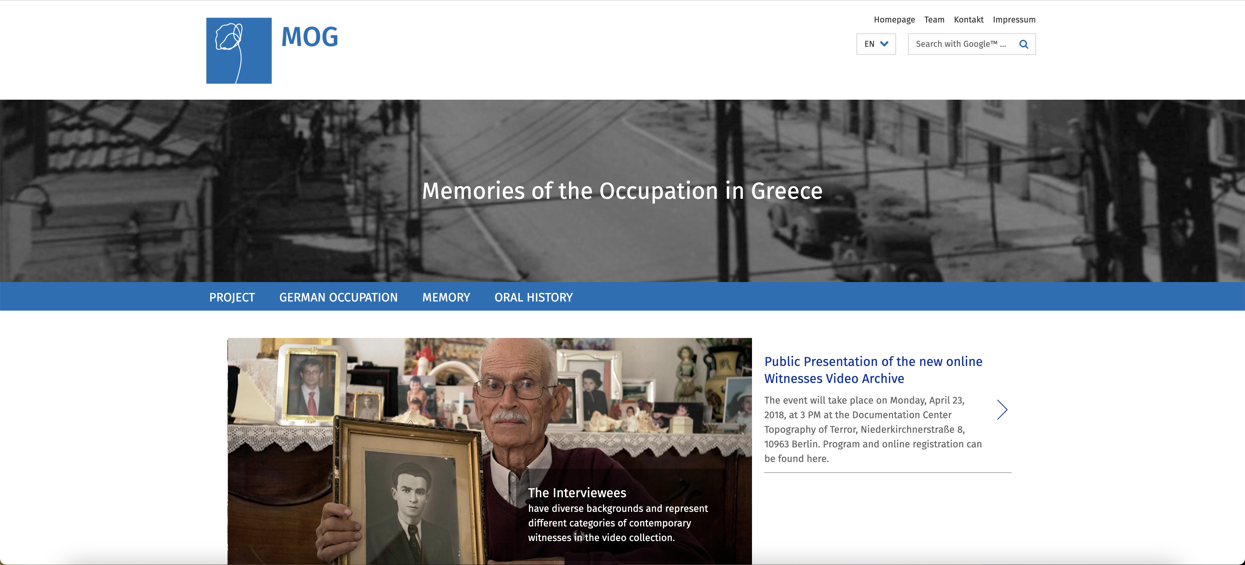 Screenshot of the Memories of the Occupation in Greece homepage