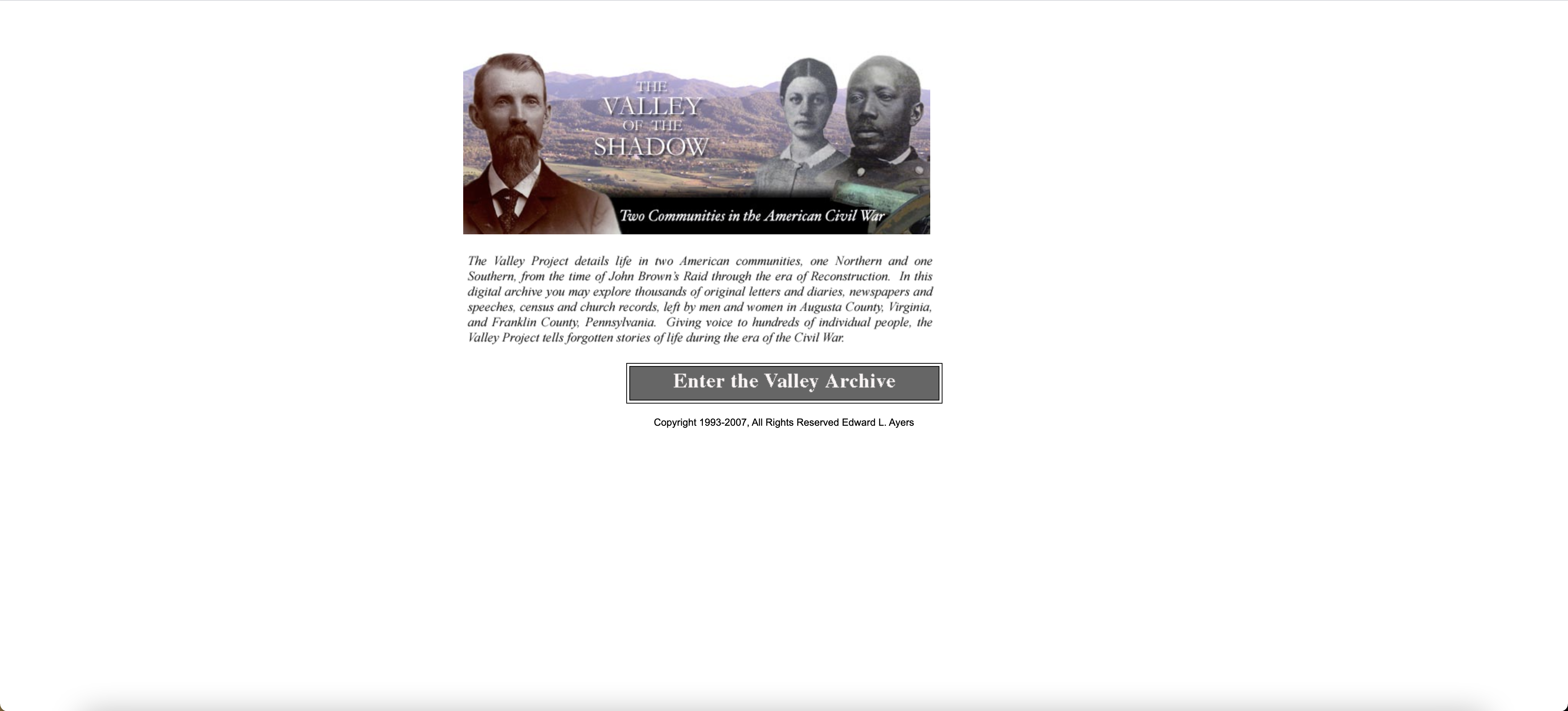 Screenshot of The Valley of the Shadow homepage