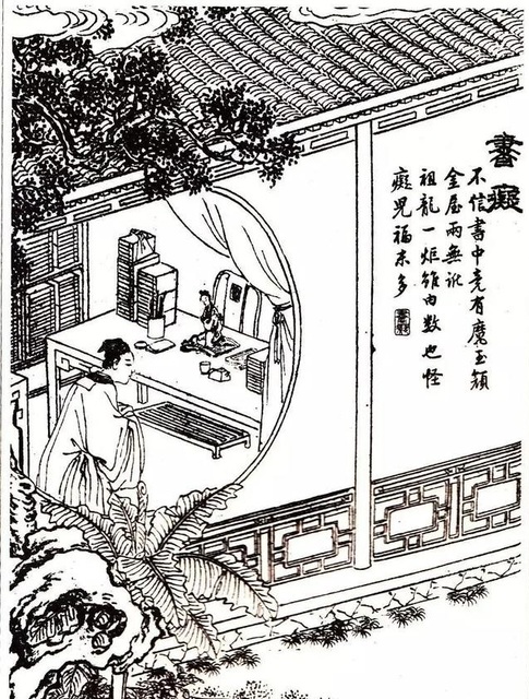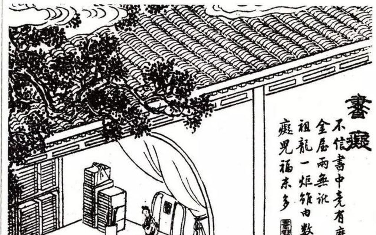 19th-century illustration of a scene in "The Bookworm", a short story by Pu Songling in Strange Tales from a Chinese Studio