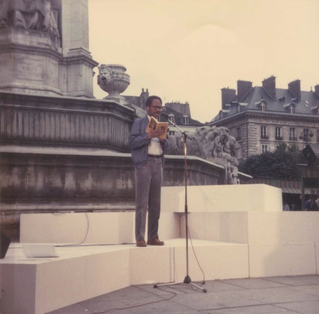 JAE public reading La Nuit de la Poesie (Festival Franco-Anglais de Poesie), Place Saint Sulpice, 24 June 1988.
