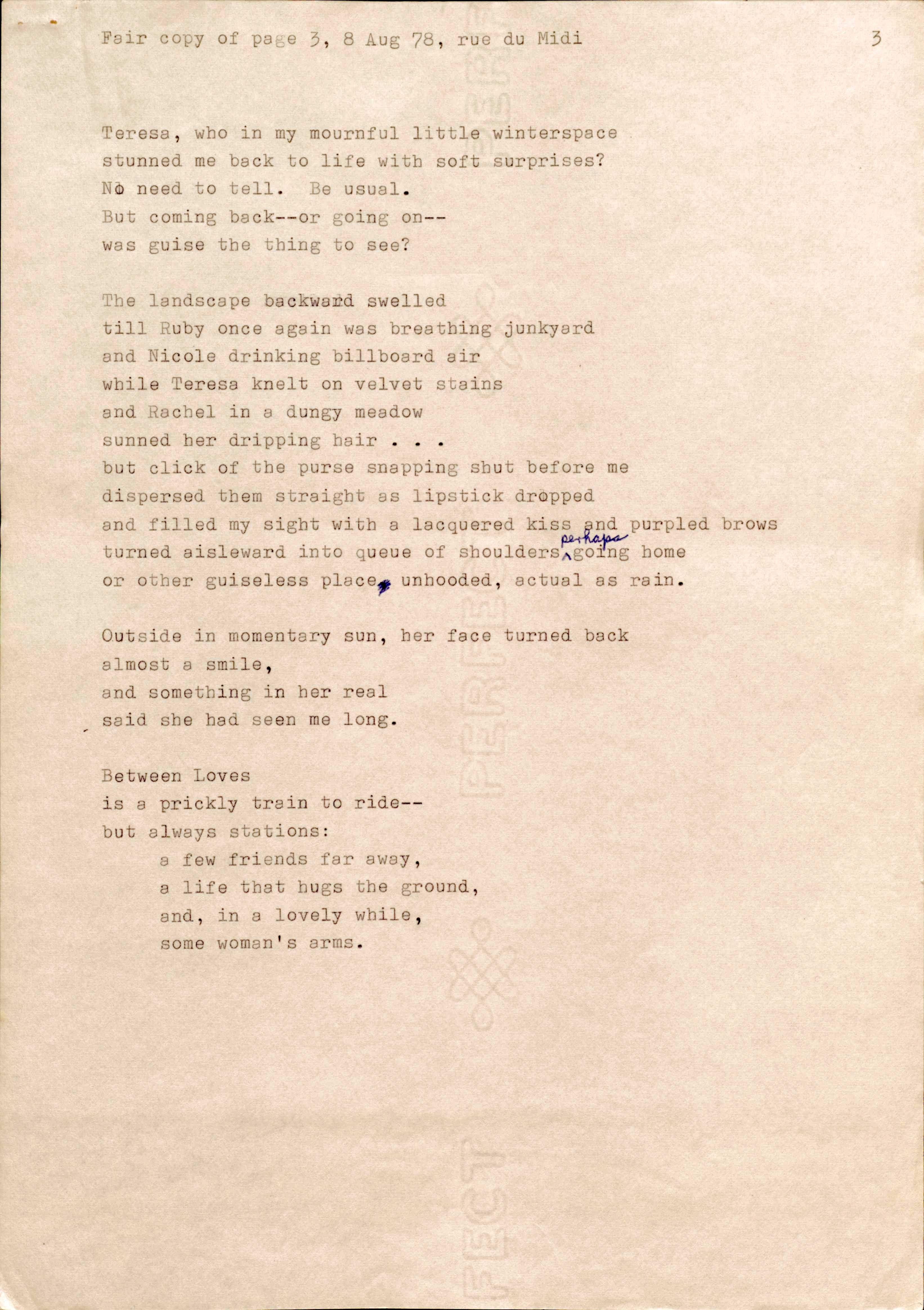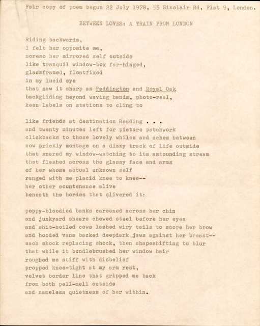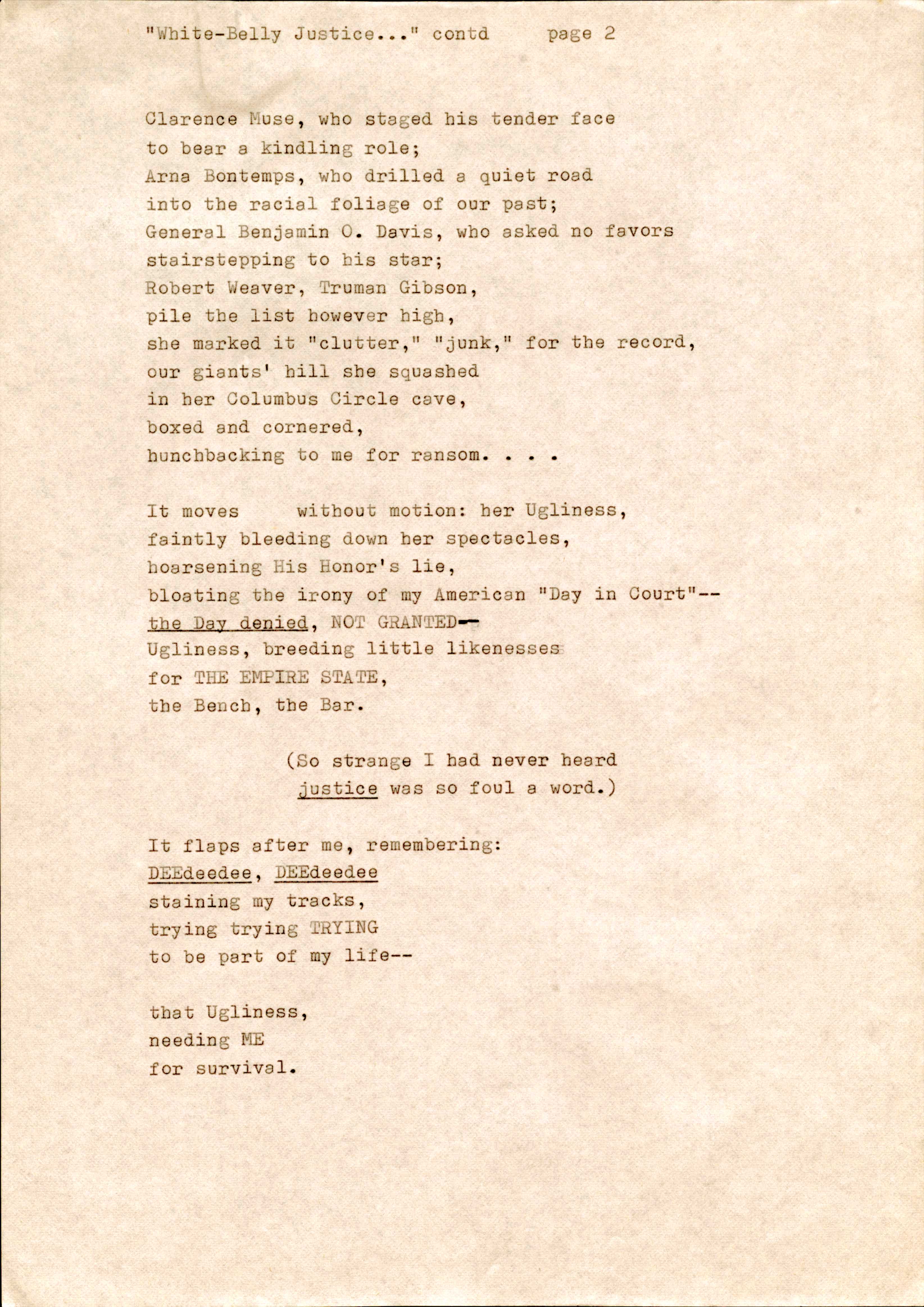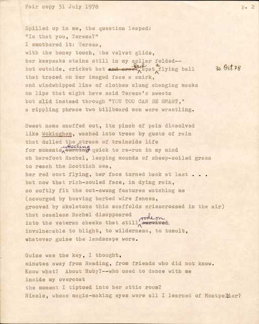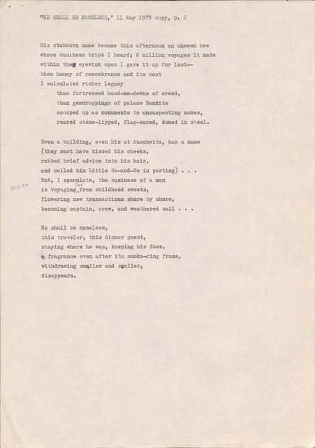 The James A. Emanuel Project’s Poetry Collection contains eighty-eight items that make up forty-six poems published between 1945 (“Dark Soldier”) and 2008 (“"Obama’s Acceptance Speech”). Of these poems, there are fourteen draft poems and eight annotated poems. For comparative purposes, there are eleven poems that include drafts or annotations as well as a final copy. The drafts provide readers with access to Emanuel’s writing process, making more visible the nuances of his word choice, line structure, and titles. Also, in his drafts, readers can view Emanuel’s system of documentation in which he notes the place, date, and time of composition. Emanuel’s annotations reveal his attention to detail and his concern for clarity, purpose, and memory as a poet.