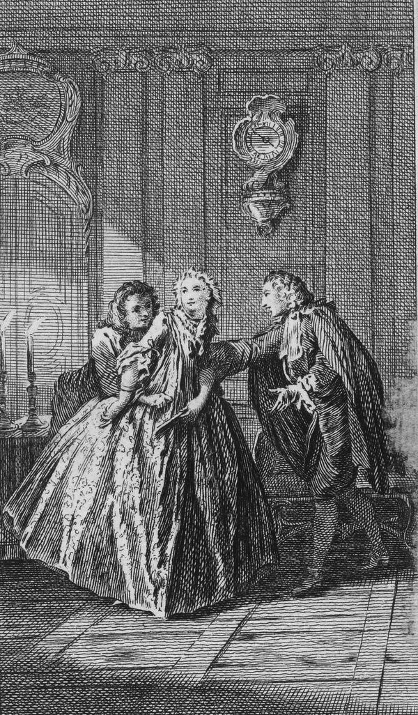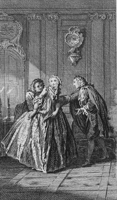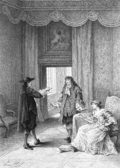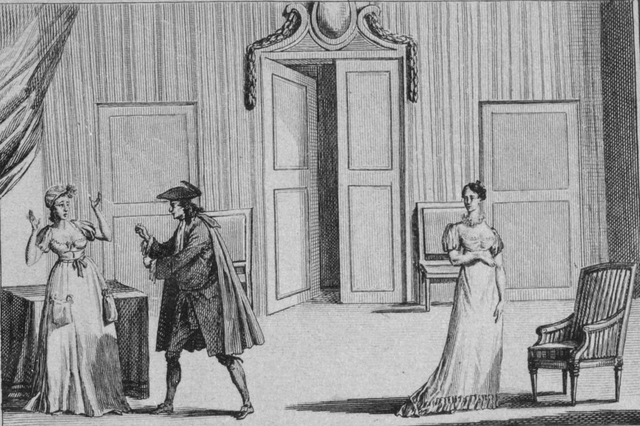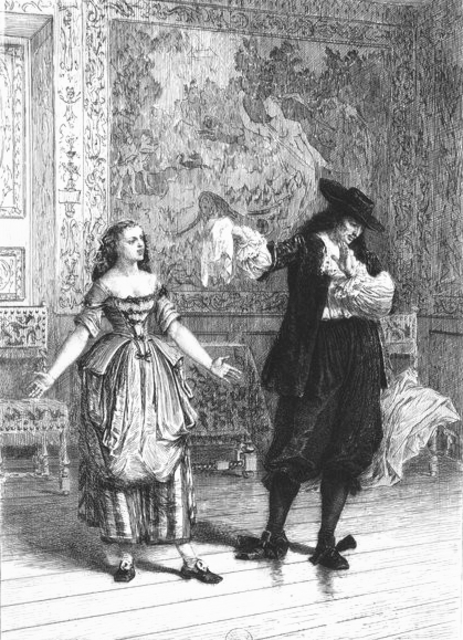 UploadedMr. de Vigny (Valère) and Miss Devienne (Dorine) around 1790. Engraving by Jean Duplessis-Bertaux