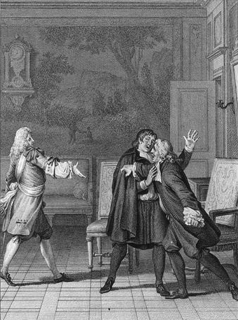 UploadedOrgan: Oh! you resist, beggar, and insult him? (Act III, Scene 6). Engraving by Jean-Michel Moreau, between 1760 and 1780