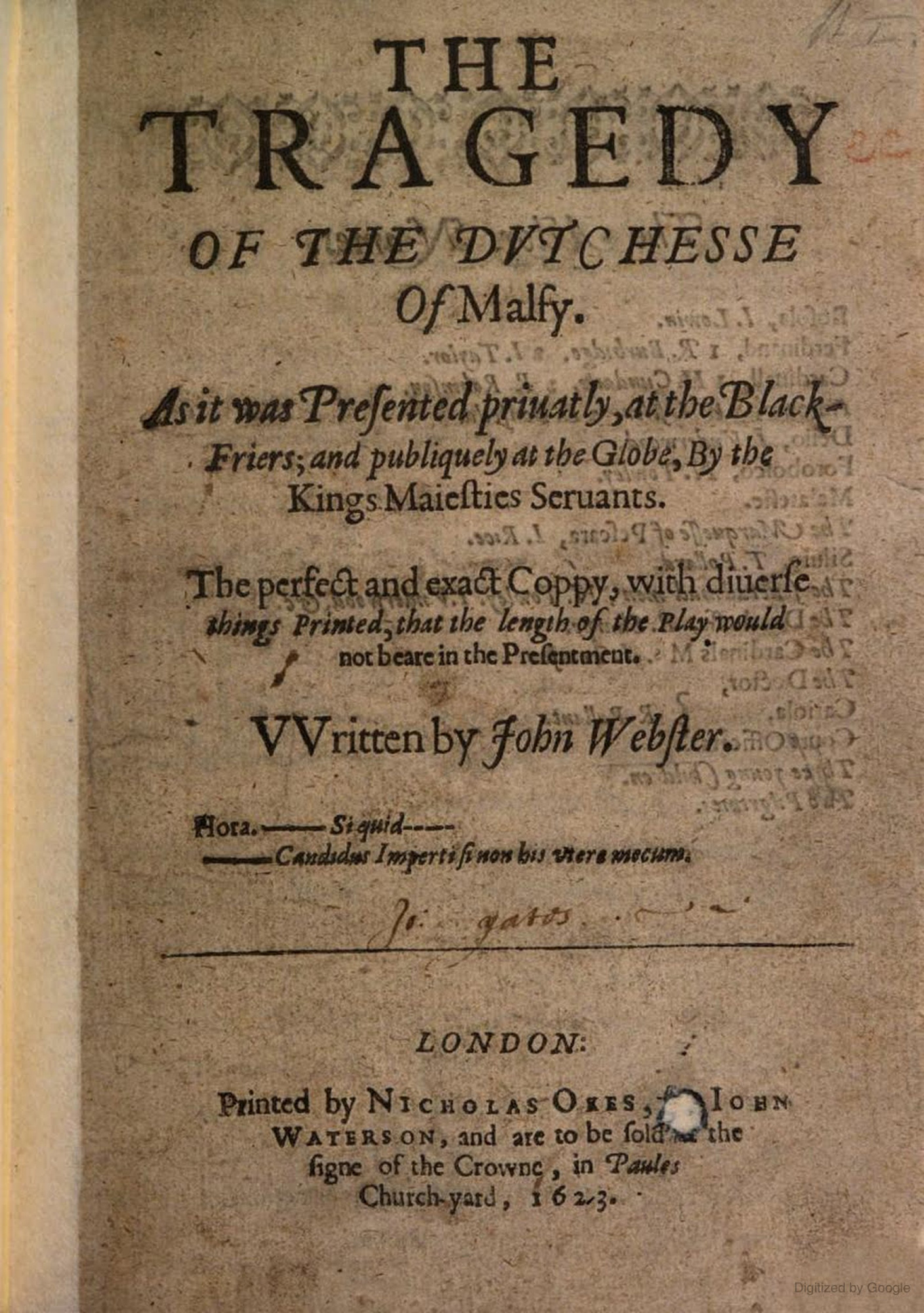 UploadedEntry by Melanie Friedman: First Edition of John Webster's The Duchess of Malfi, 1623