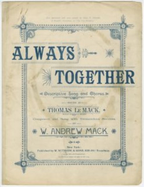 Background: New York Public Library Archives, The New York Public Library. "Great Kills, Shelves and stool" The New York Public Library Digital Collections. 1935. http://digitalcollections.nypl.org/items/510d47df-e3d3-a3d9-e040-e00a18064a99 Cover: Music Division, The New York Public Library. "Always together" The New York Public Library Digital Collections. 1891. http://digitalcollections.nypl.org/items/510d47dd-ed8b-a3d9-e040-e00a18064a99