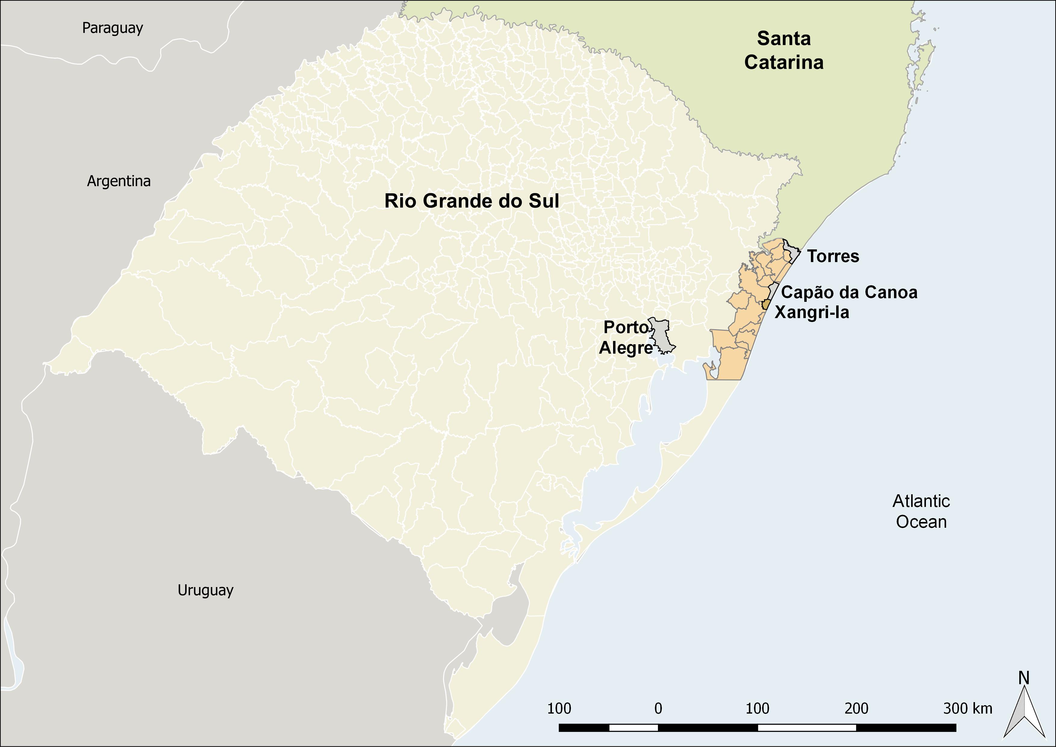 Two small coastal cities (population range between 20,000 and 50,000 inhabitants according to the IBGE – Brazilian Institute of Geography and Statistics - classification), Capão da Canoa and Torres (Figure 1), located on the north coast of the southern Brazilian state (Rio Grande do Sul), are considered as case studies.