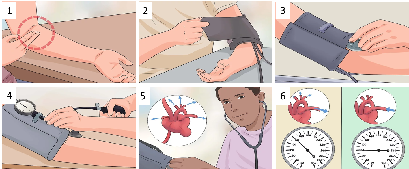- Perform arterial blood pressure measurement utilizing a pressure cuff and stethoscope