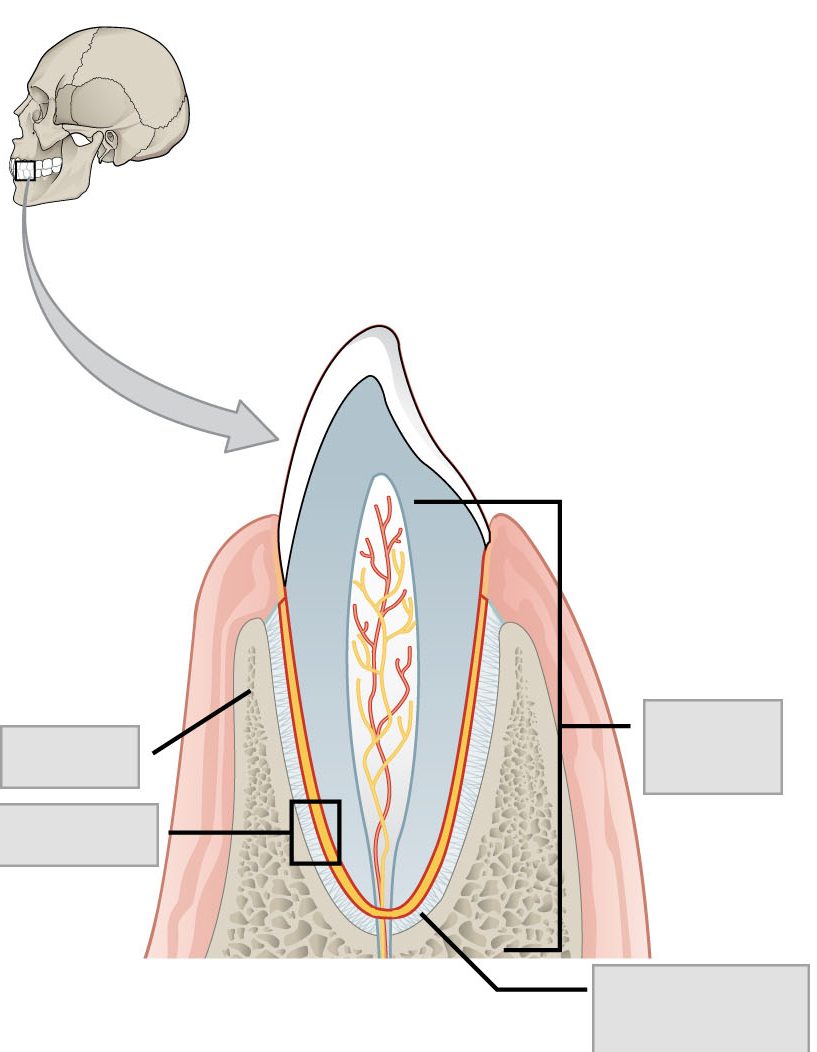· Alveolar process of mandible · Periodontal ligament · Gomphosis · Root of tooth