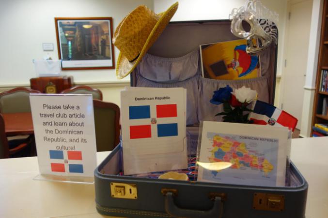 Independence. Both the “K” and “S” residences encouraged residents to use and maintain their ability to carry out meaningful activities and help with household tasks. In the “S” residence, a resident could sit at the kitchen counter and help cut fruit to make salads for lunch. Another resident was observed pushing a cart with food to the sunroom. In the “K” residence, residents participated in the Culinary Club, baking cookies for refreshment (see Fig. 4) and helping to arrange the tableware. However, all household activities were guided by care partners. In both residences, theme corners were purposefully arranged for residents to self-initiate activities, such as reading today’s article, learning about baseball, or helping to complete a puzzle (see Fig. 5). However, only one resident was observed reading the article provided in the alcove. The environments and guidance of care partners worked together to help residents exercise their independence.