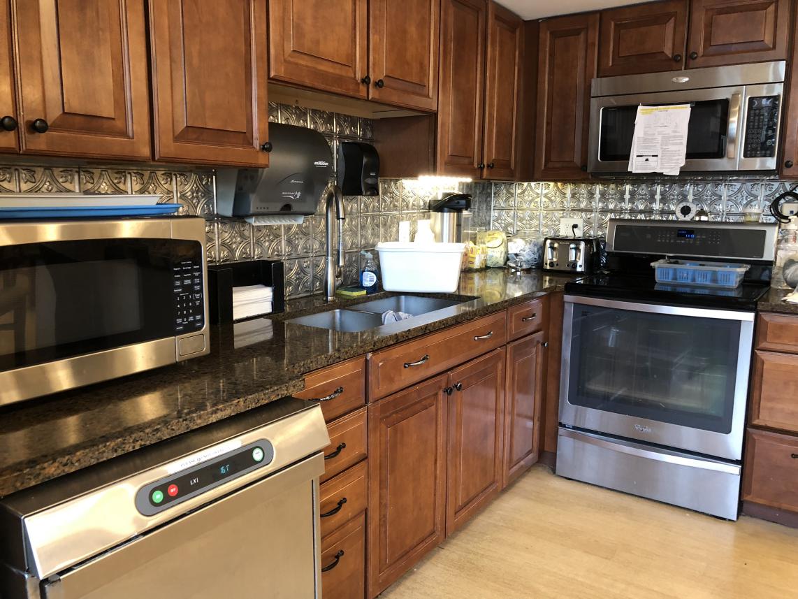 Residents were partially free to use the small kitchen. The sink and refrigerator were always accessible. For safety reasons, the toaster, microwave, and coffee maker were available to residents but all the plugs were pulled out after use. The oven was only used for Culinary Club activities and was locked the rest of the time.