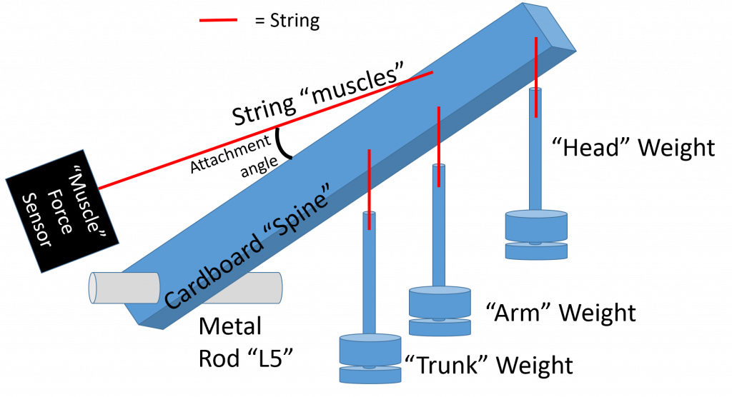 3. You will use provided string to serve as the erector spinae muscles that lift the back and use a force sensor to measure the tension in the string.