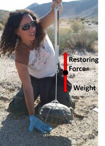 Spring scales are designed to take advantage of Hooke's law to determine the size of the force stretching the spring by measuring the displacement. For example when hanging the object from the spring scale the force of gravity will pull it down and the restoring force in the spring pulls it up, as represented by the free body diagram of the turtle in the following image: