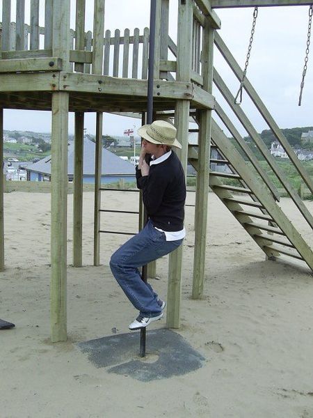 A person clings to a playground fire pole. “Firepole” by Donkeysforever, via Wikimedia Commons is in the Public domain