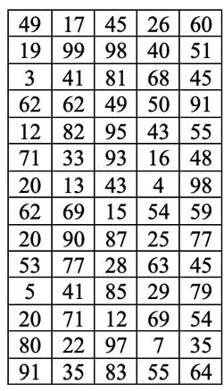 Table 16: Exercise 4 Data