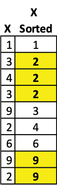 There is no mathematical formula for calculating the mode. To do this by hand, sort the data in order of magnitude; which means ordered from smallest to highest. When using nominal data, sort the variables alphabetically. Count how many times each value occurs. The mode is the value that appears most often. See the example in Table 2.