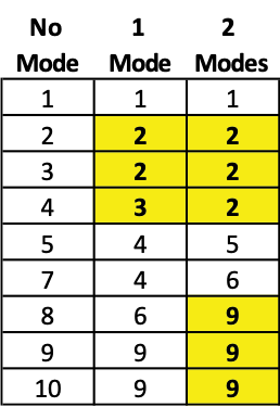 The MODE and MODE.SNGL function should be avoided given their inability to detect more than one mode.