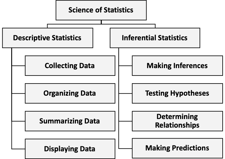 There are two main branches of the science of statistics: Descriptive Statistics and Inferential Statistics.