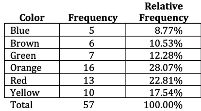 Table 1: Qualitative Data: M&Ms Candy Colors