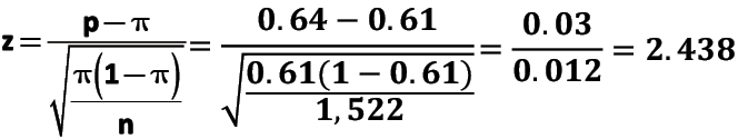 • Conduct a one-sample z-test for the proportion, π.
