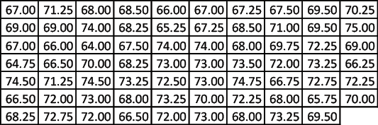 Table 2: Survey of the Height of 69 Men Rounded to the Nearest Quarter of an Inch