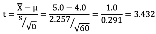 Figure 17: Graphic representation of the one-sample t-test with 59 degrees of freedom