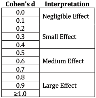 Table 1: Interpreting Cohen’s d Effect Size