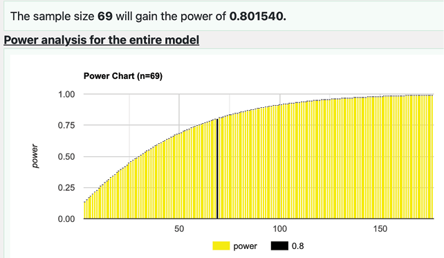 Figure 4: A Priori Statistical Power – 80% Power Requires 69 respondents