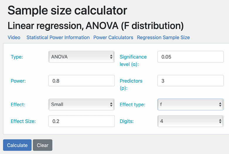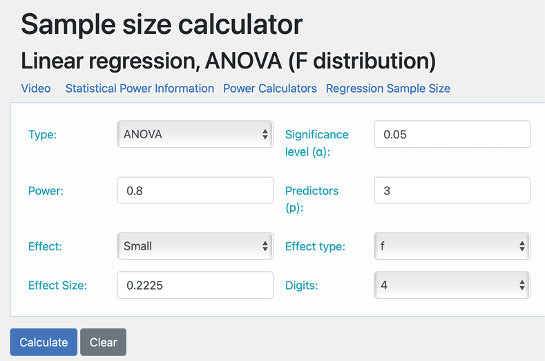 • Use G*Power and the Statistics Kingdom sample size calculator to run an a priori statistical power analysis.