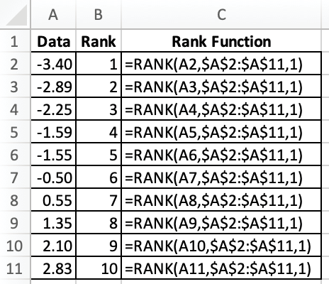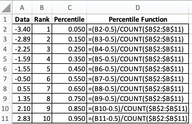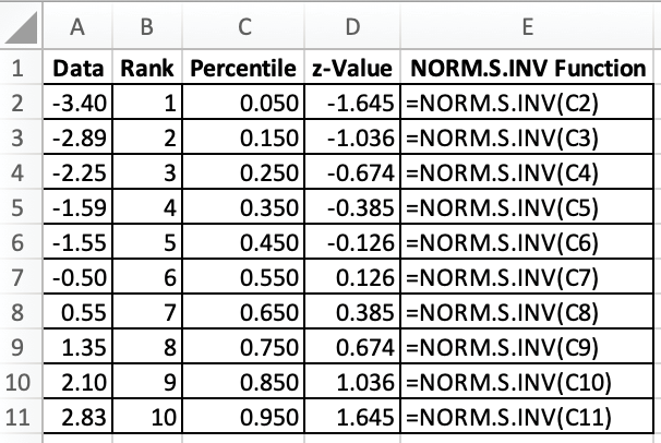 Step 4: Calculate the z-value for each variable using Excel’s NORM.S.INV function.