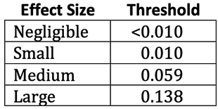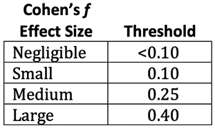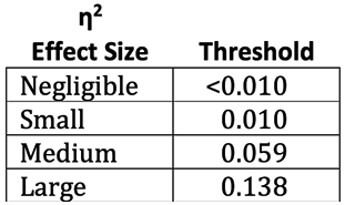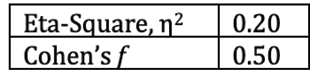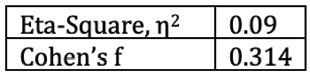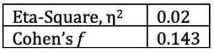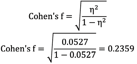 Note: The value for η² is rounded, Cohen’s f was calculated using Excel