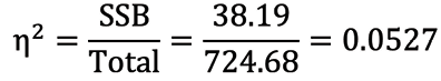 • Calculate and interpret the eta-squared, η2, effect size, know how this measure of effect size compares to Cohen’s f effect size, and how these measures relate to practical significance.