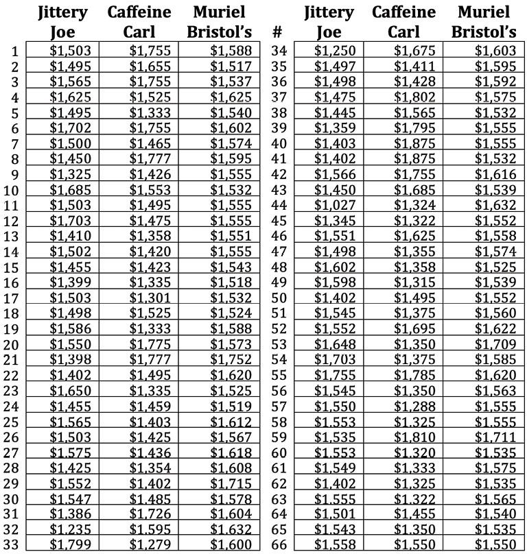Here is the comparison between Jittery Joe and Muriel Bristol:
