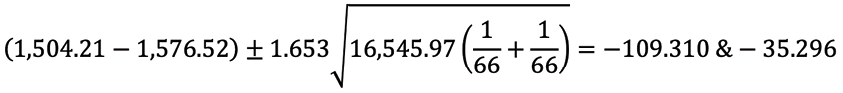 Equation 22: LSD Confidence Interval: Caffeine Carl’s Sales Does Not Equal Muriel Bristol’s