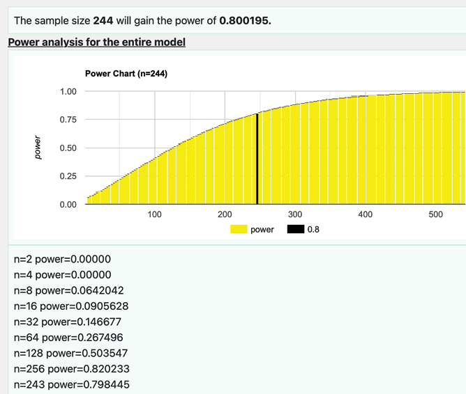 2) Using either G*Power or Statistical Kingdom’s online power calculator, run an a priori power analysis. Comment on your findings.