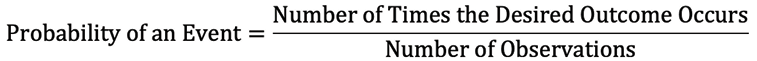 Empirical probability applies when the number of times an event happens is divided by the number of observations. Here is the formula for empirical probability: