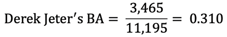 Equation 5: Formula for Calculating a Batting Average