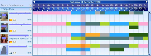 Students using EURO-CAT could declare their individual status, based on these dimensions throughout the task. They could also visualize and respond to other teammates’ statements. Initial results were obtained from quasi-experimental conditions with the tool focused on time management to support coordination convergence (Romero, Tricot and Mariné 2009). The findings suggest that group awareness and temporal convergence increased in all groups using EURO-CAT, and in particular in those groups having a lower knowledge level before the start of the collaborative learning activity.