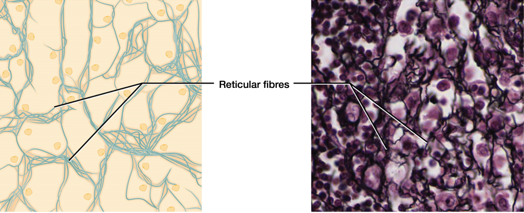 Reticular tissue is a mesh-like, supportive framework for soft organs such as lymphatic tissue, the spleen, and the liver (Figure 6). Reticular cells produce the reticular fibres that form the network onto which other cells attach. It derives its name from the Latin reticulus, which means “little net.”