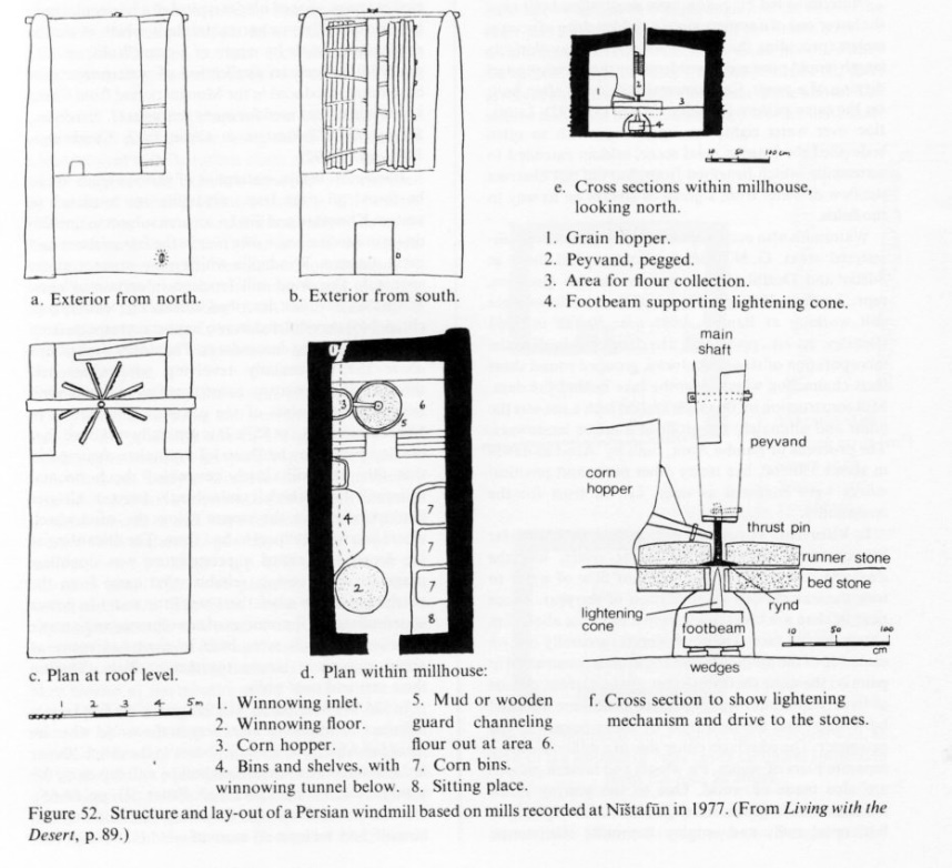 The drawings show an Asbad structure and layout based on the mills documented in Nistafun in 1977 (Drawing Source: Beazley, & Harverson, 1982, Living with the desert, p. 89).