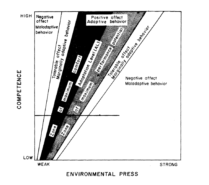 Nahemow, L., & Lawton, M. P. (1973). Toward an Ecological Theory of Adaptation and Aging.1, 24–32. Retrieved from http://www.edra.org/content/toward-ecological-theory-adaptation-and-aging