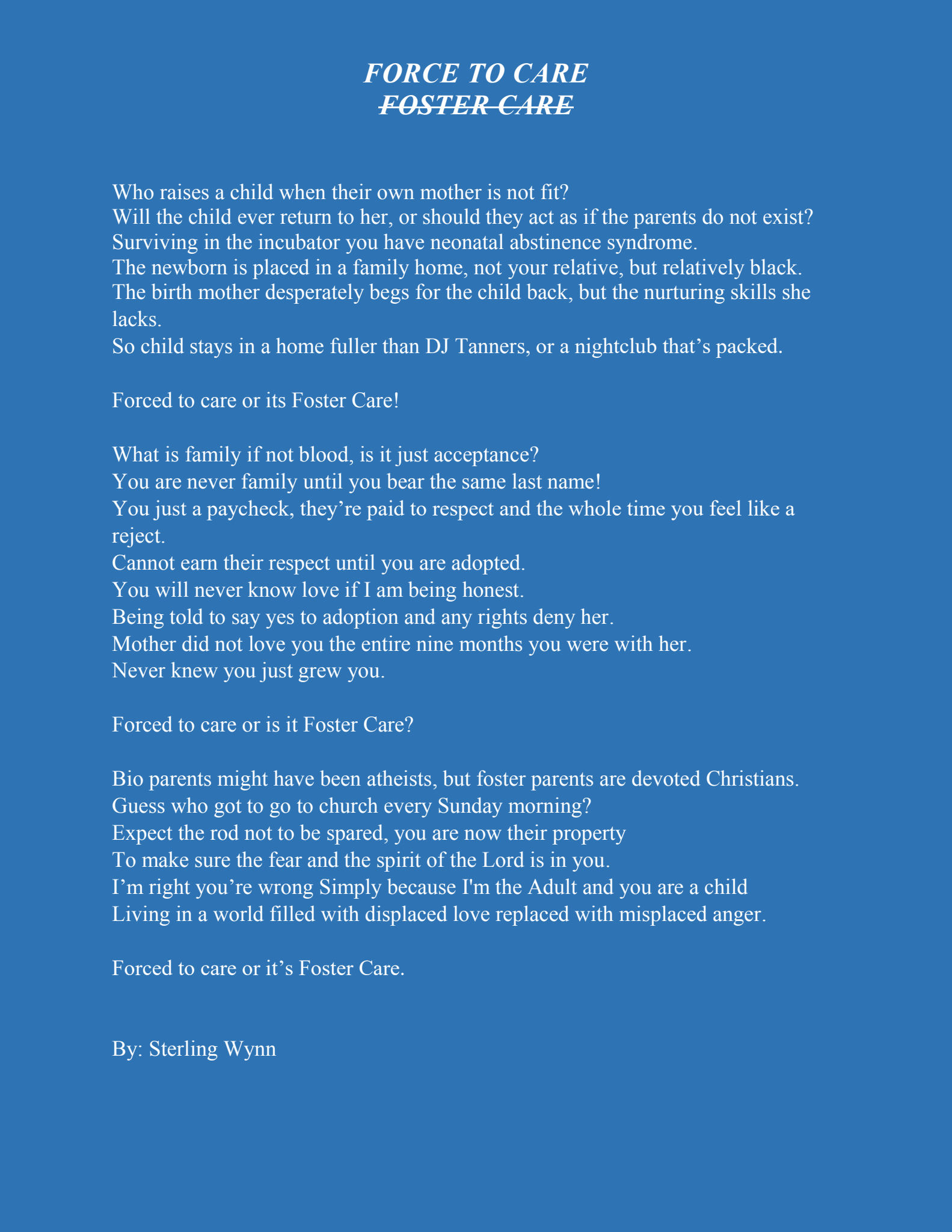 FORCE TO CARE FOSTER CARE