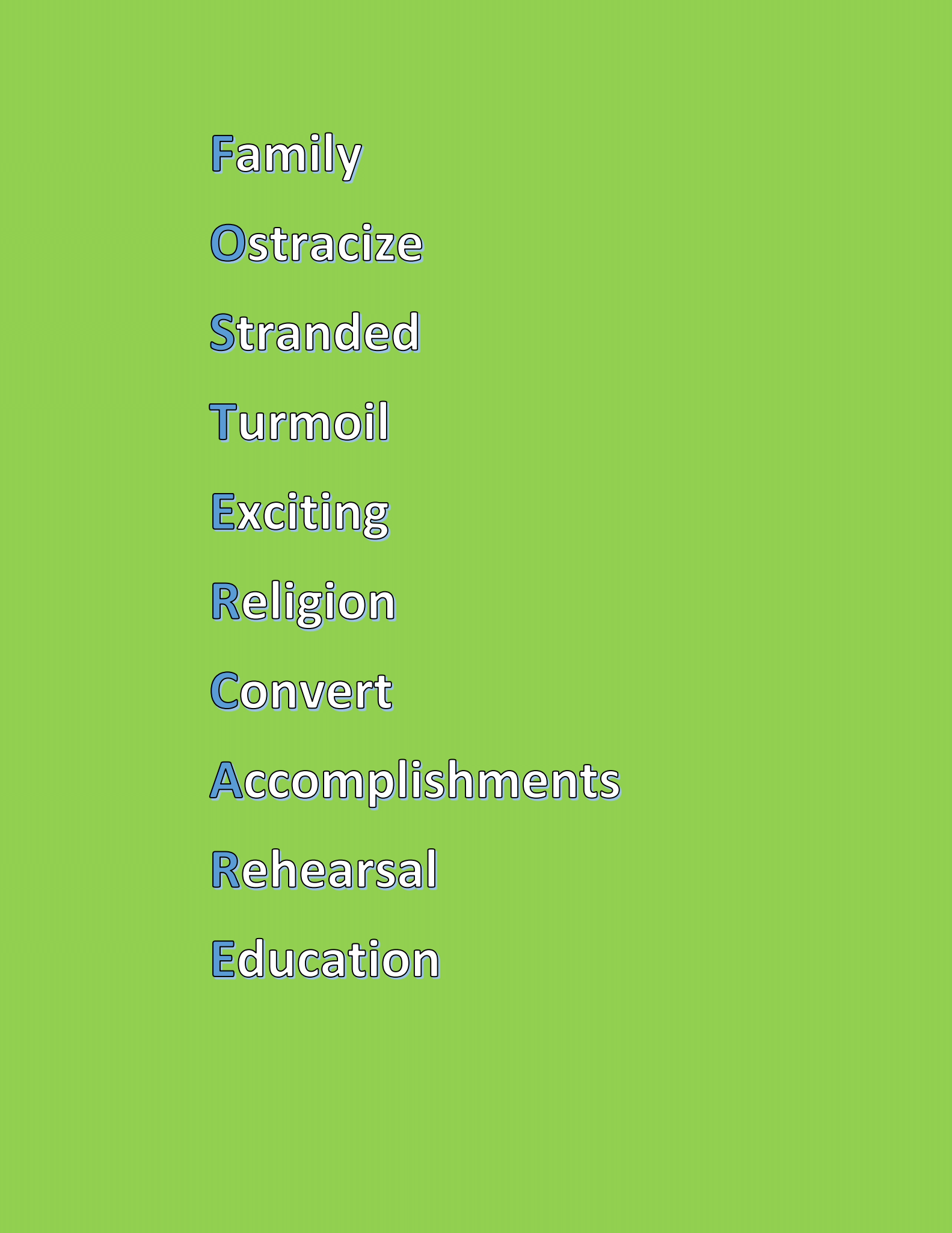 My work is simply to navigate what it is like to grow up in a foster care home that has a religious background. I interviewed Alexis a woman who when she was a child attended the same church as I and she was also a foster child who never got adopted but aged out of the system and traveled from home to home. Both of our biological parents struggle with drug abuse. The church had a big influence on the fostering of orphans and that is how we connect. I had interviewed her as well as my nephew who was only in foster care for roughly 6 months but it was great to get everyone take. For the creative part instead of using their interview itself, I found ways to tell their story and mine through different types of poetry.