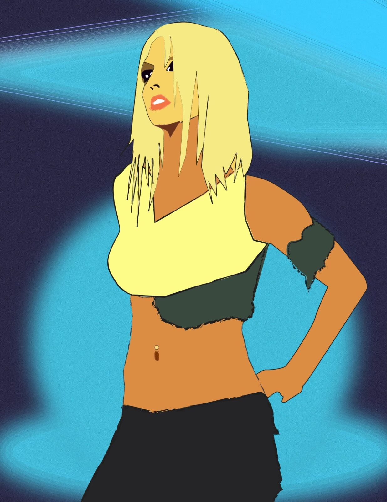 Britney Spears on the set of “I’m A Slave 4 U” in late 2001. Illustration © Hilado.