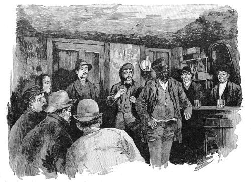 East Side poverty is not alone in thus rewarding the tyrants that sweeten its cup of bitterness with their treacherous poison. The Fourth Ward points with pride to the honorable record of the conductors of its “Tub of Blood,” and a dozen bar-rooms with less startling titles; the West Side to the wealth and “social” standing of the owners of such resorts as the “Witches’ Broth” and the “Plug Hat” in the region of Hell’s Kitchen three-cent whiskey, names ominous of the concoctions brewed there and of their fatally generous measure. Another ward, that boasts some of the best residences and the bluest blood on Manhattan Island, honors with political leadership in the ruling party the proprietor of one of the most disreputable Black-and-Tan dives and dancing-hells to be found anywhere. Criminals and policemen alike do him homage. The list might be strung out to make texts for sermons with a stronger home flavor than many that are preached in our pulpits on Sunday. But I have not set out to write the political history of New York. Besides, the list would not be complete. Secret dives are skulking in the slums and out of them, that are not labelled respectable by a Board of Excise and support no “family entrance.” Their business, like that of the stale-beer dives, is done through a side-door the week through. No one knows the number of unlicensed saloons in the city. Those who have made the matter a study estimate it at a thousand, more or less. The police make occasional schedules of a few and report them to headquarters. Perhaps there is a farce in the police court, and there the matter ends. Rum and “influence” are synonymous terms. The interests of the one rarely suffer for the want of attention from the other.