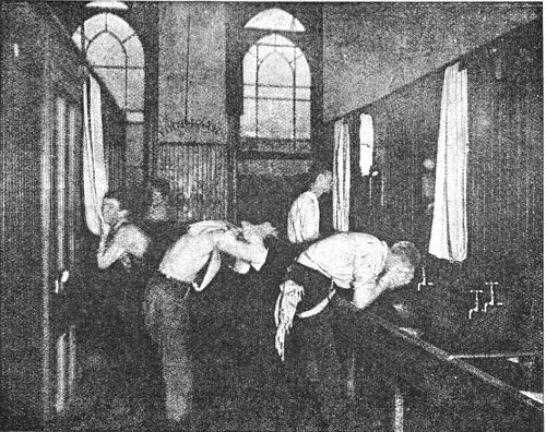I tried one night, not with the best of success I confess, to photograph the boys in their wash-room, while they were cleaning up for supper. They were quite turbulent, to the disgust of one of their number who assumed, unasked, the office of general manager of the show, and expressed his mortification to me in very polite language. “If they would only behave, sir!” he complained, “you could make a good picture.”